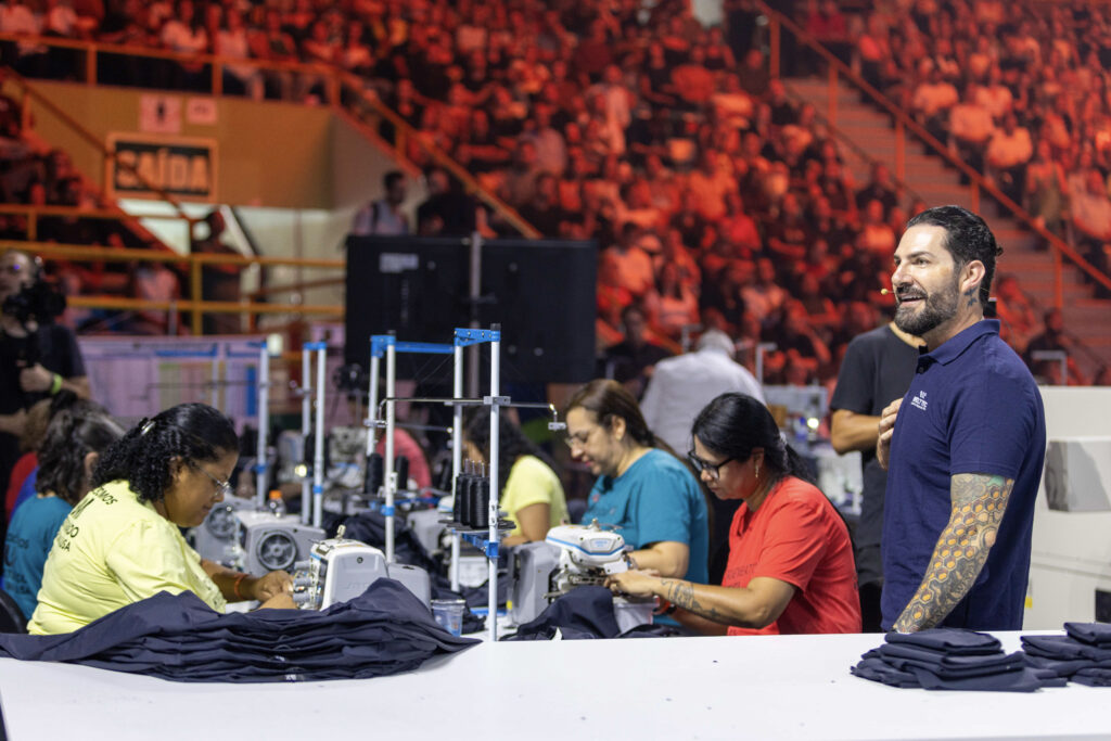 Com um grupo de 50 profissionais, de diversos dos nossos departamentos, entre áreas estratégicas e técnicas, passamos dois dias em imersão, assistindo a conteúdos e à performance de costureiras numa confecção real e ao vivo, montada no centro do Ginásio do Ibirapuera, em São Paulo.